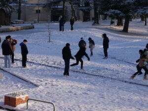 Ces derniers jours, un épisode neigeux a recouvert notre région d’un beau manteau blanc. À la sortie des cours et pendant les récréations, les élèves du collège ont profité de la neige pour s’amuser. Certains faisaient des batailles de boules de neige tandis que d’autres marchaient en laissant des traces sur le sol. Ensemble, ils ont aussi construit un bonhomme de neige avec des branches pour les bras et des cailloux pour les yeux. Malgré le froid, l’ambiance était joyeuse et ces moments resteront un très bon souvenir pour tous.